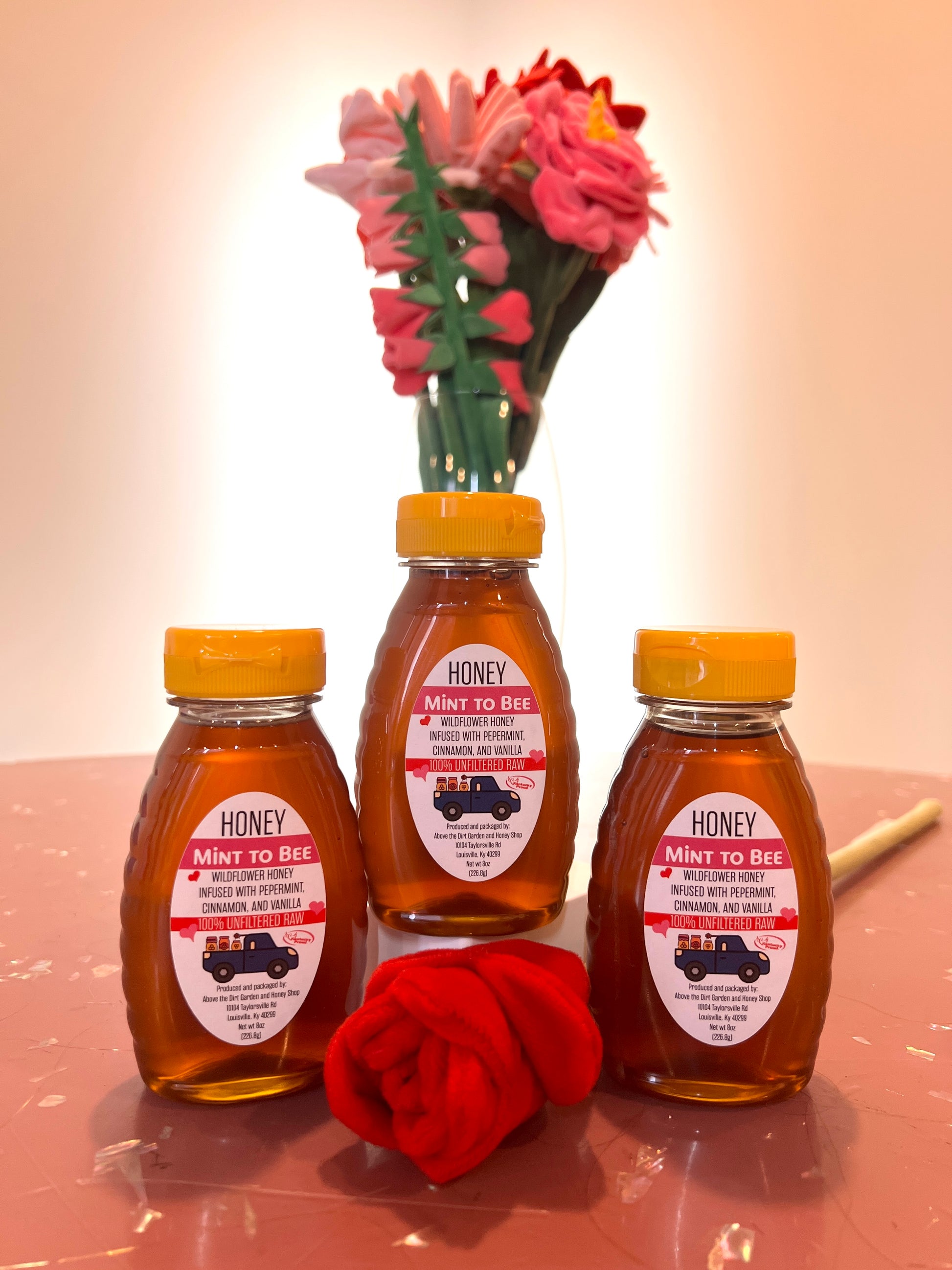 Our seasonal Peppermint Wildflower Honey is infused with peppermint cinnamon, and vanilla and is the perfect gift for the special Valentine in your life!